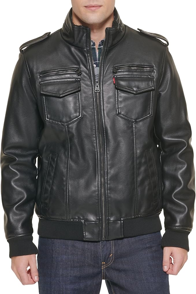 Mens Faux Leather Aviator Bomber Jacket