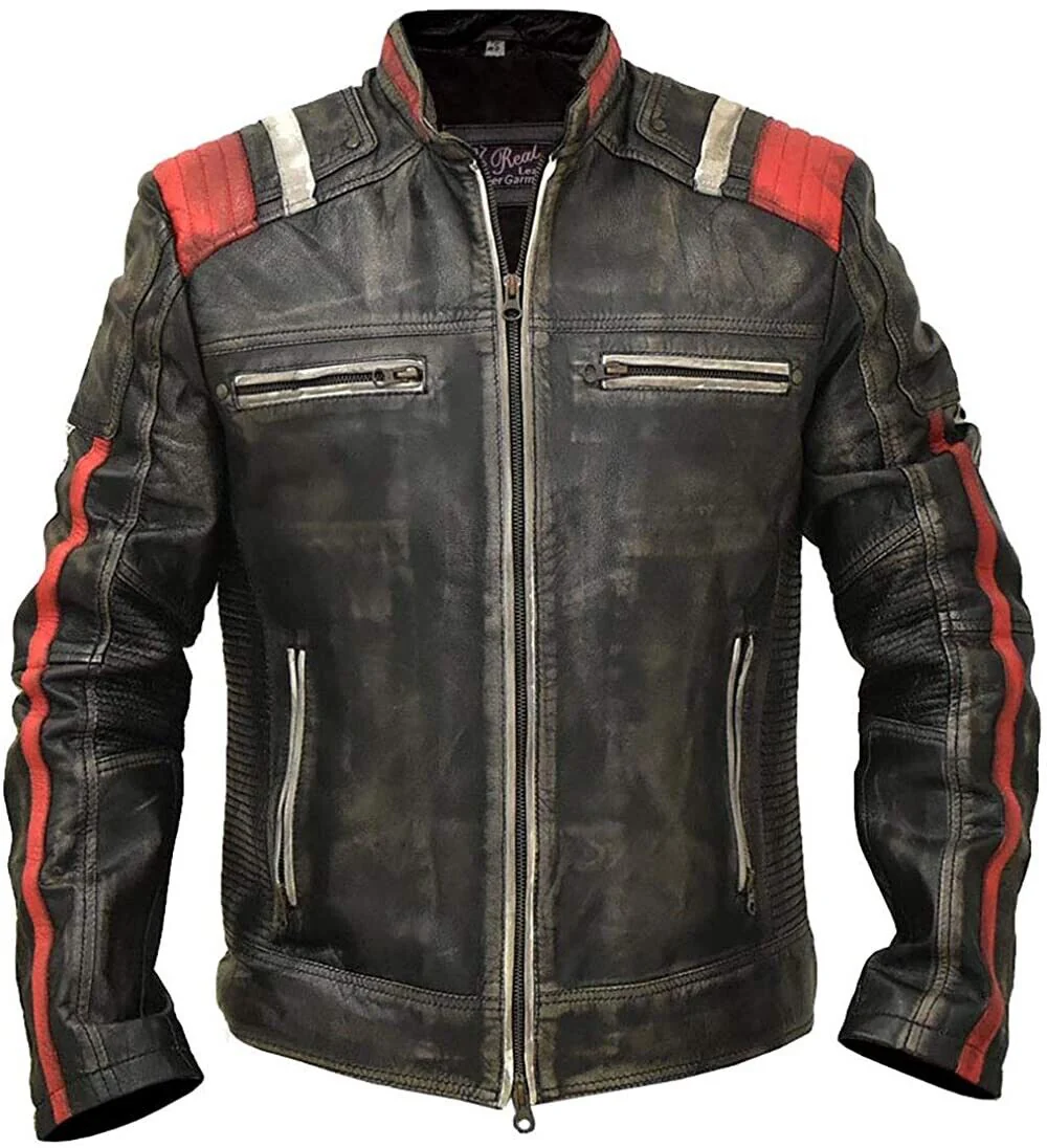 New Men’s Moto Cafe Racer Retro Distressed Vintage Style Motorcycle Biker Jacket