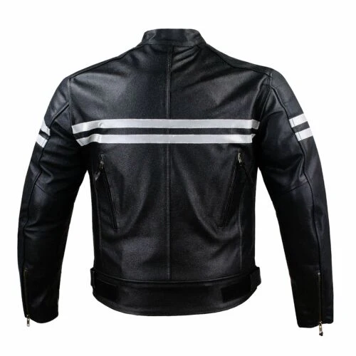 Motorcycle Leather Jacket For Men Black Moto Riding Racer Retro Biker