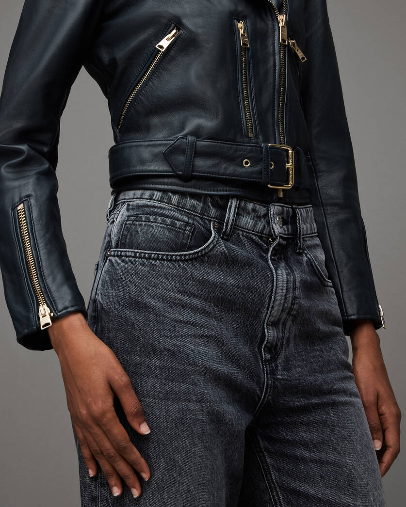 Balfern Belted Hem Leather Biker Jacket