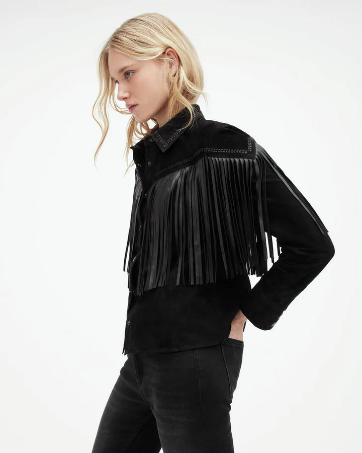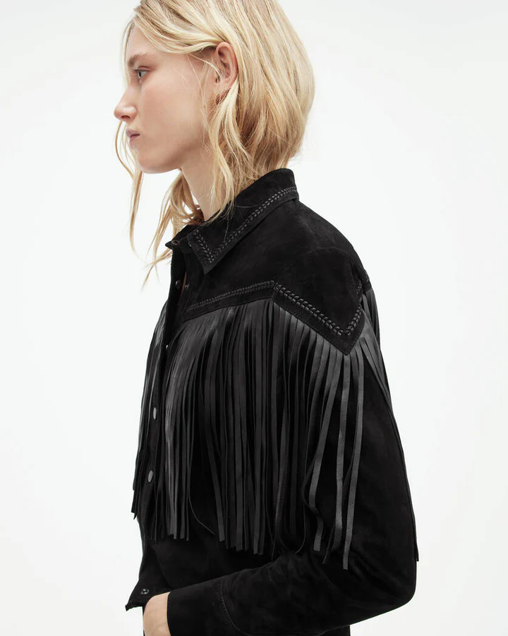 The Cleo Western Suede Jacket is made from high-quality suede leather, known for its soft texture and luxurious feel.