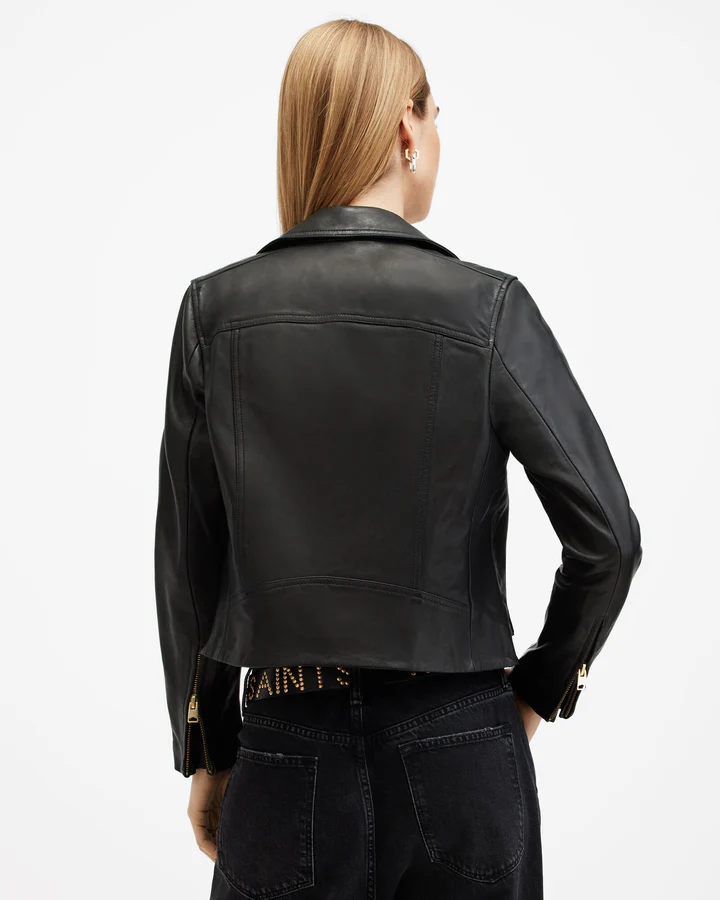- This leather jacket is designed to a slim fit