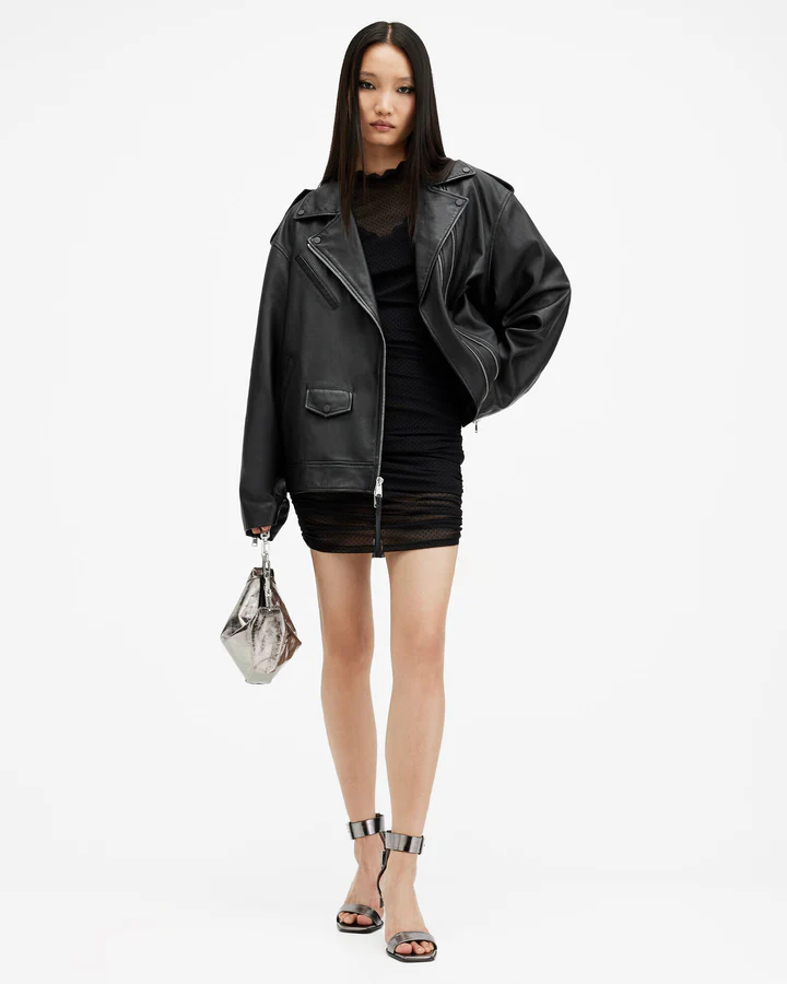 If you liked our bestselling Dayle Biker, you’re going to love this. The Daylen is a new oversized style crafted from soft leather. The statement silhouette features dropped shoulders for a super relaxed feel. Classic details keep things authentic – it features shoulder epaulettes, a belt and multiple pockets. Our signature hardware is the finishing touch. Dress it up with a mini dress for maximum attitude. Or keep things chill – it looks just as good worn with an oversized tee and jeans.