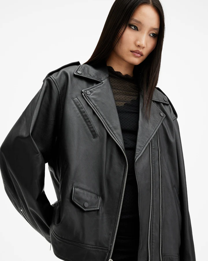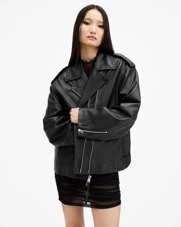 Be the first to review “Daylen Oversized Leather Biker Jacket”