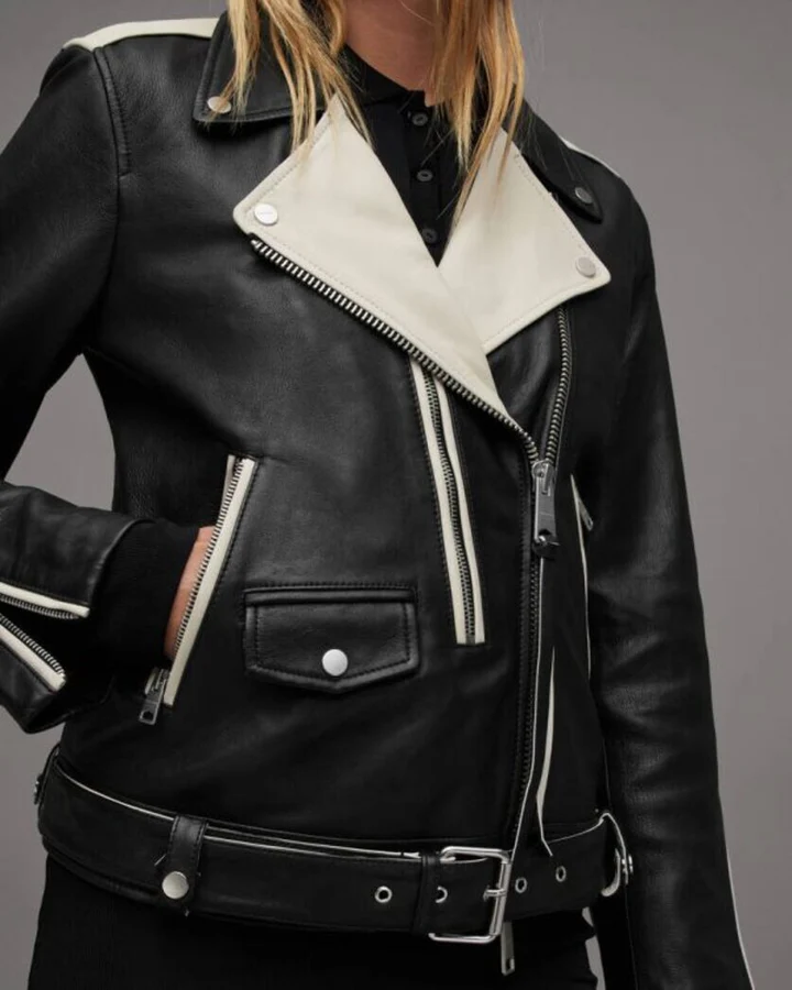- Bold Contrast Design: Features striking color contrasts that add a modern twist to the classic biker jacket style.