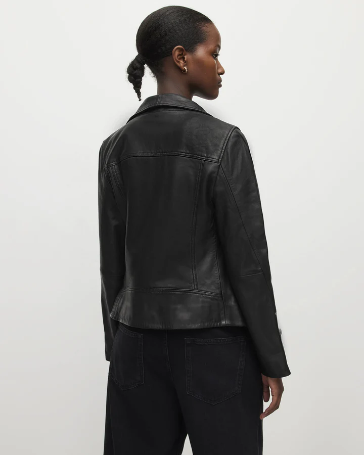 Looking for a leather jacket with a difference? The Ellis is for you. Expertly crafted from premium chrome-free leather, with minimal metal hardware and a statement funnel neck collar – it’s the main attraction. Shaped to a flattering silhouette, this jacket highlights your shape in just the right way. Modern and sophisticated, it’s a versatile leather that will take you from work to weekend with ease.