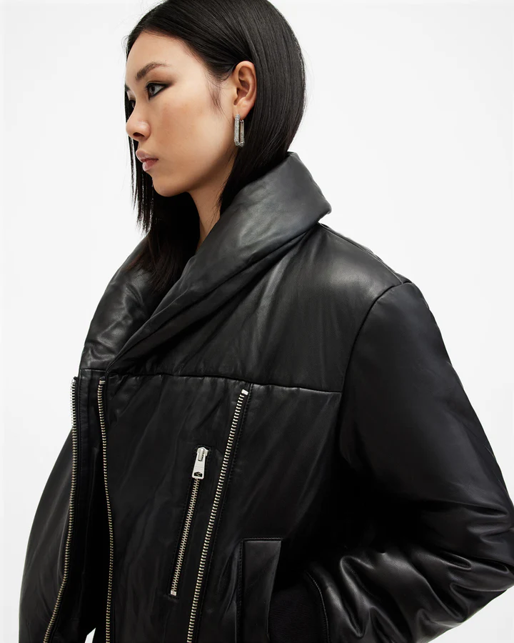 Designed with a tailored, slightly fitted silhouette, the Lauren Leather Puffer Jacket offers a flattering, feminine shape while still allowing for ease of movement.
