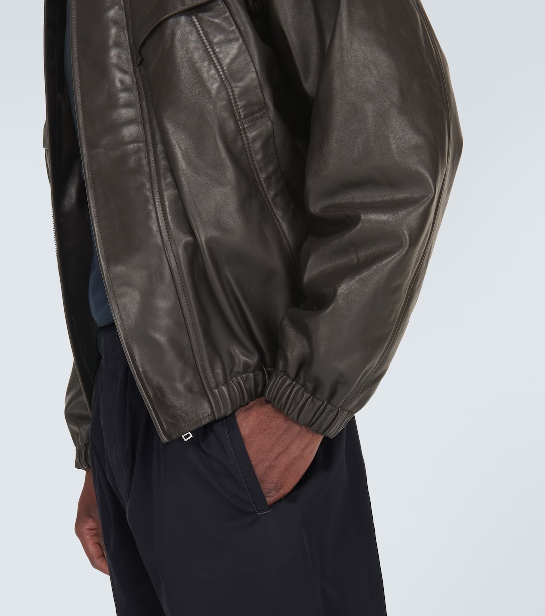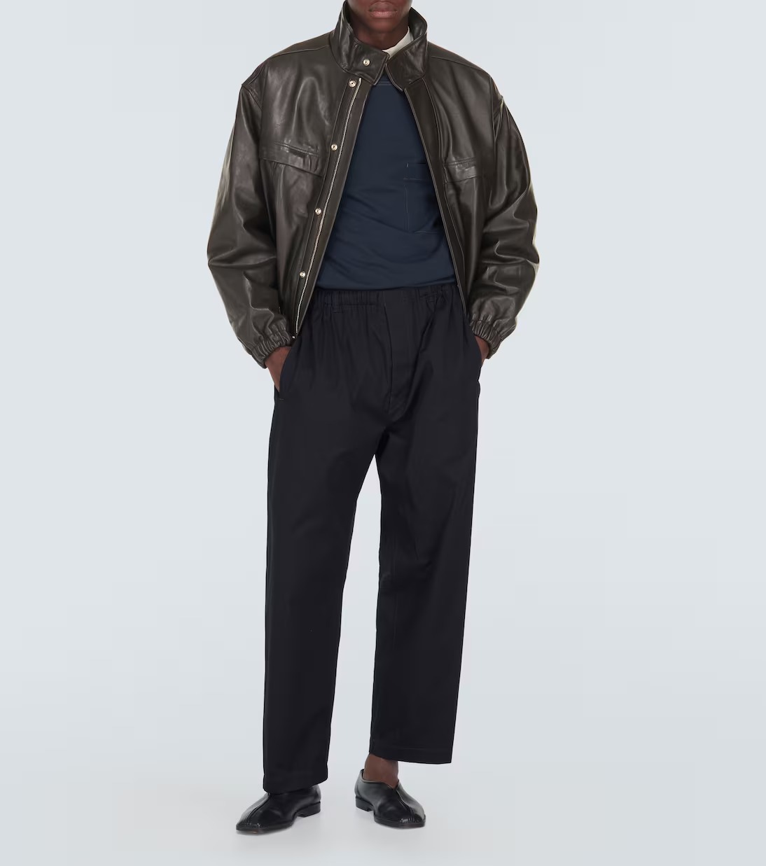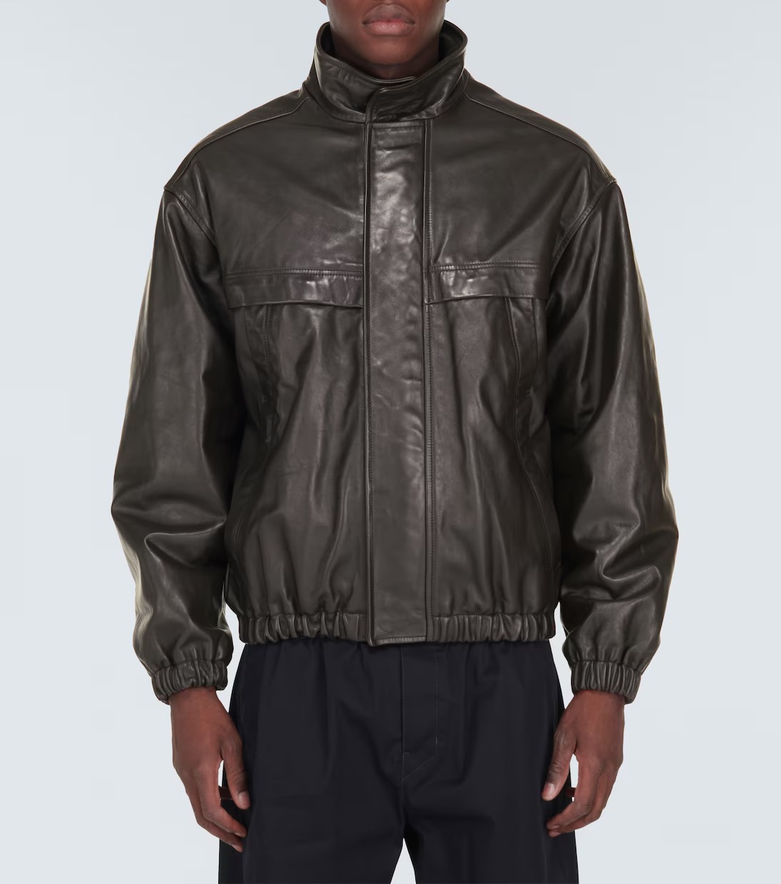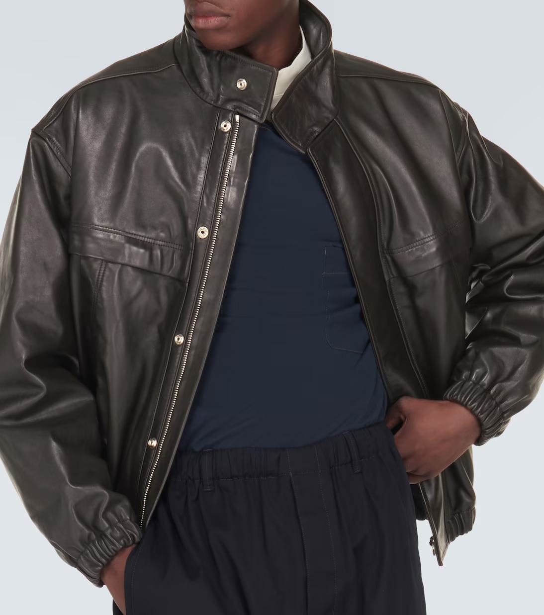 Designed with a retro-inspired silhouette, this premium leather blouson by Lemaire blends elegance and practicality. Made from 100% genuine cow leather, it features a fully lined interior for added comfort and durability. The stand collar, elasticated cuffs, and hemline ensure a perfect fit, while the combination of zipper and snap-button closures adds classic bomber appeal. Ideal for layering through all seasons, this piece defines understated sophistication and style.