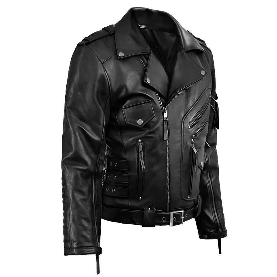 Men’s Motorcycle Leather Jacket exudes a rugged yet sophisticated aura. Made from real sheepskin leather, this biker jacket in classic black is a timeless piece that complements any wardrobe seamlessly. Designed to withstand the elements while providing a comfortable fit, this moto leather jacket is a must-have for any man seeking a versatile outerwear option. Whether hitting the open road or simply adding an edge to your everyday look, this leather jacket for men offers durability and a fashion-forward statement.