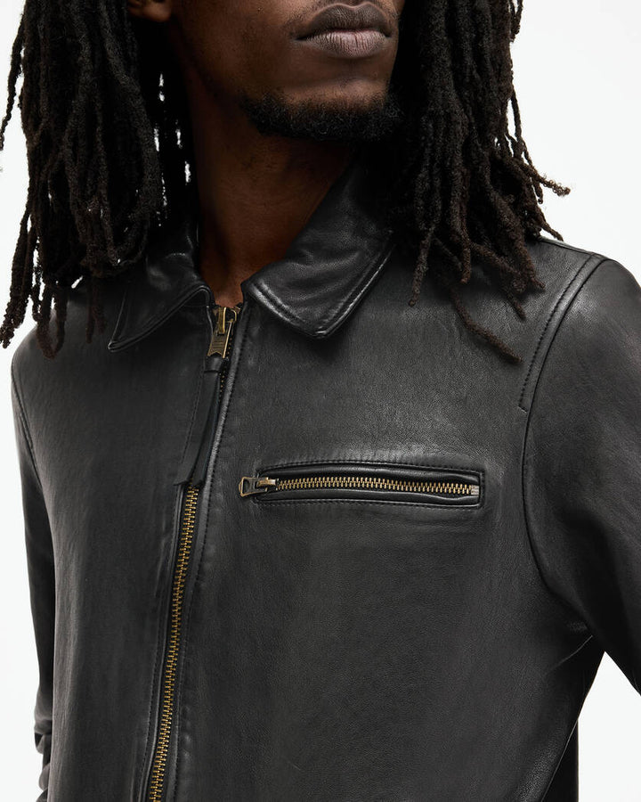 We do leather like no-one else. The Miller is a simple design crafted from soft leather. It includes signature details with a collar and chest zip pocket. This classic leather is an alternative to our signature biker silhouettes that pairs well with graphic tees, statement knits and easy hoodies.
