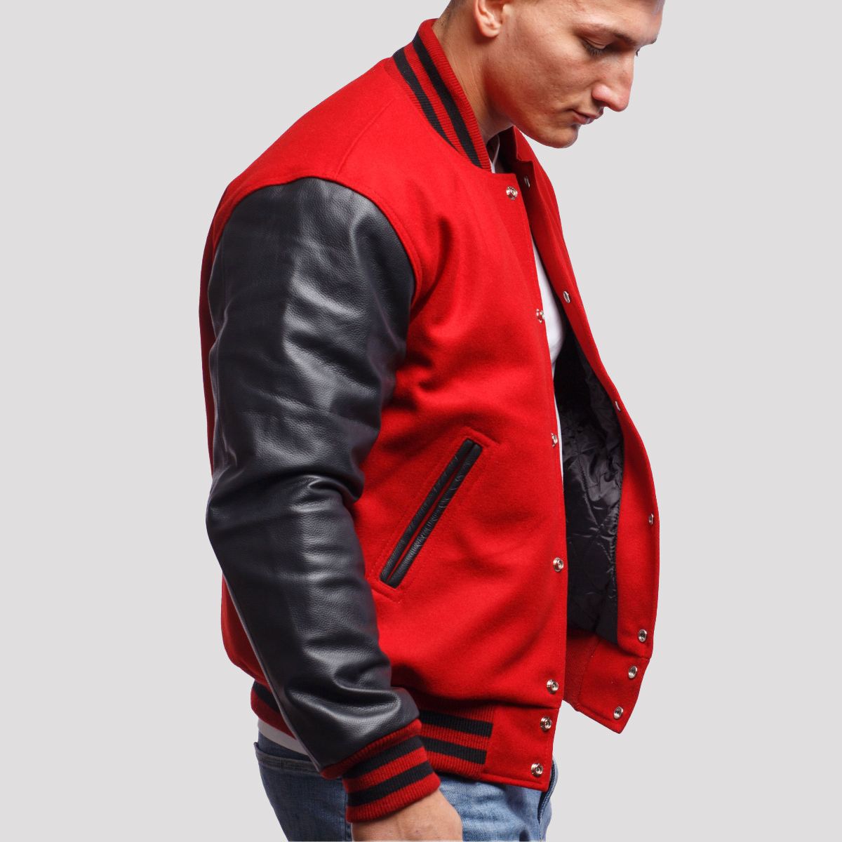 Scarlet Red Wool & Black Genuine Leather Varsity Letterman Jacket