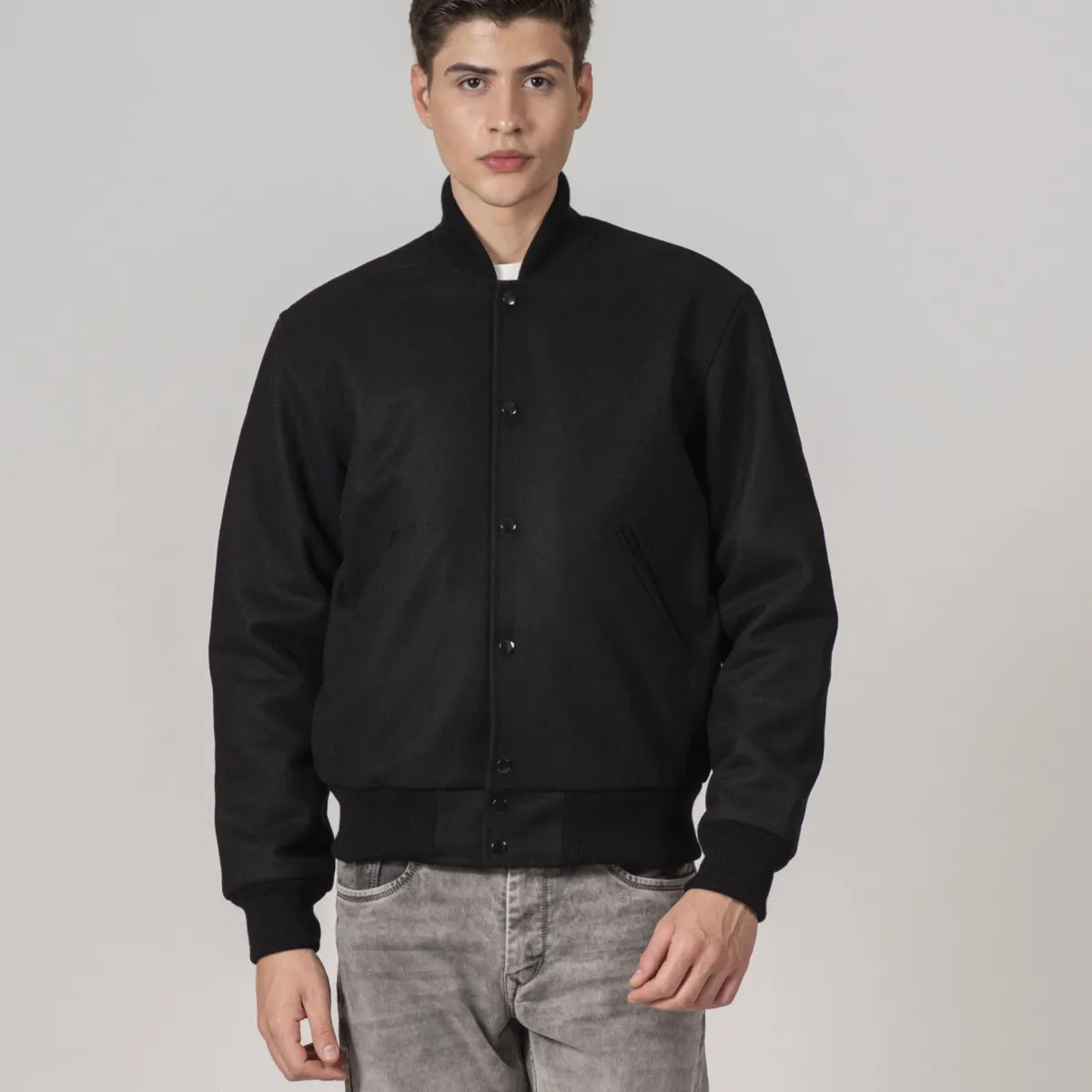 All-Wool Customizable Letterman Jacket in Sleek All-Black