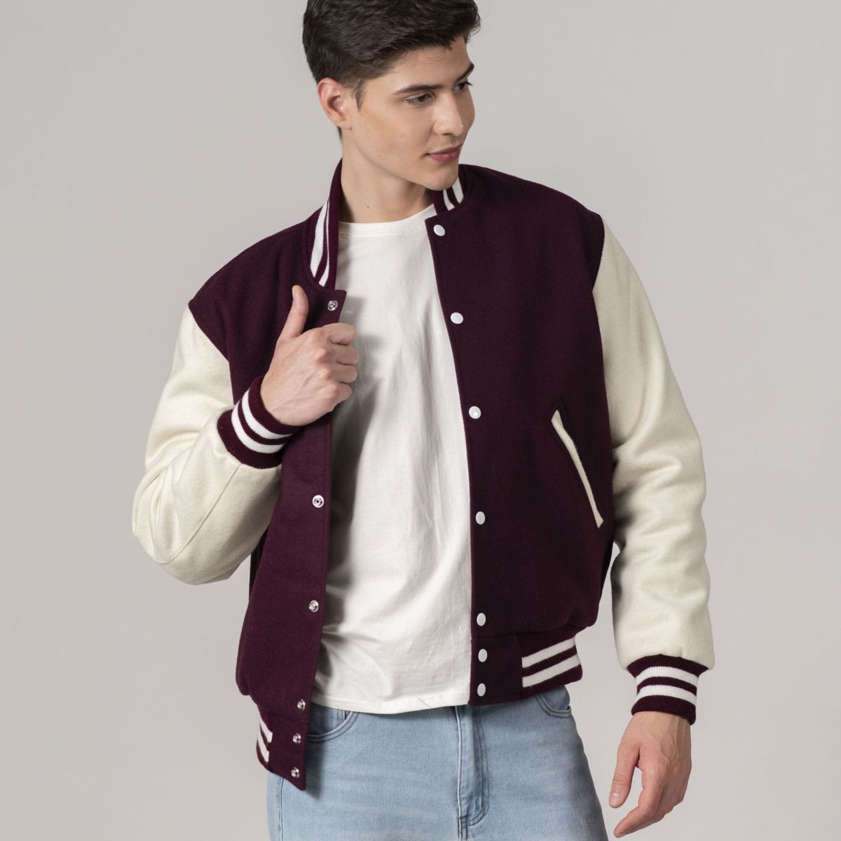 All-Wool Customizable Letterman Jacket in Maroon & White