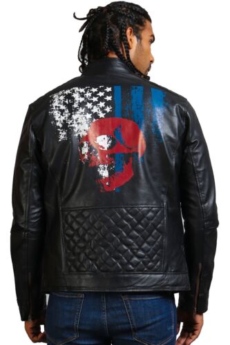 American Skull Flag Mens Biker Jacket Skull Motorcycle Jacket