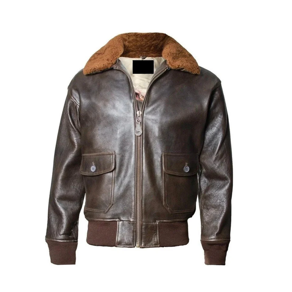 G1 Bomber Leather Jacket Detachable Fur Collar Brown Genuine Cowhide Leather Jacket